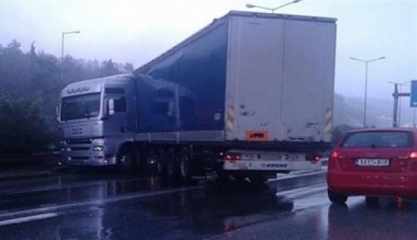 Νταλίκα δίπλωσε στα Λαγυνά τα ξημερώματα, με αποτέλεσμα να παραμένει κλειστή η Εθνική Οδός Θεσσαλονίκης Καβάλας.