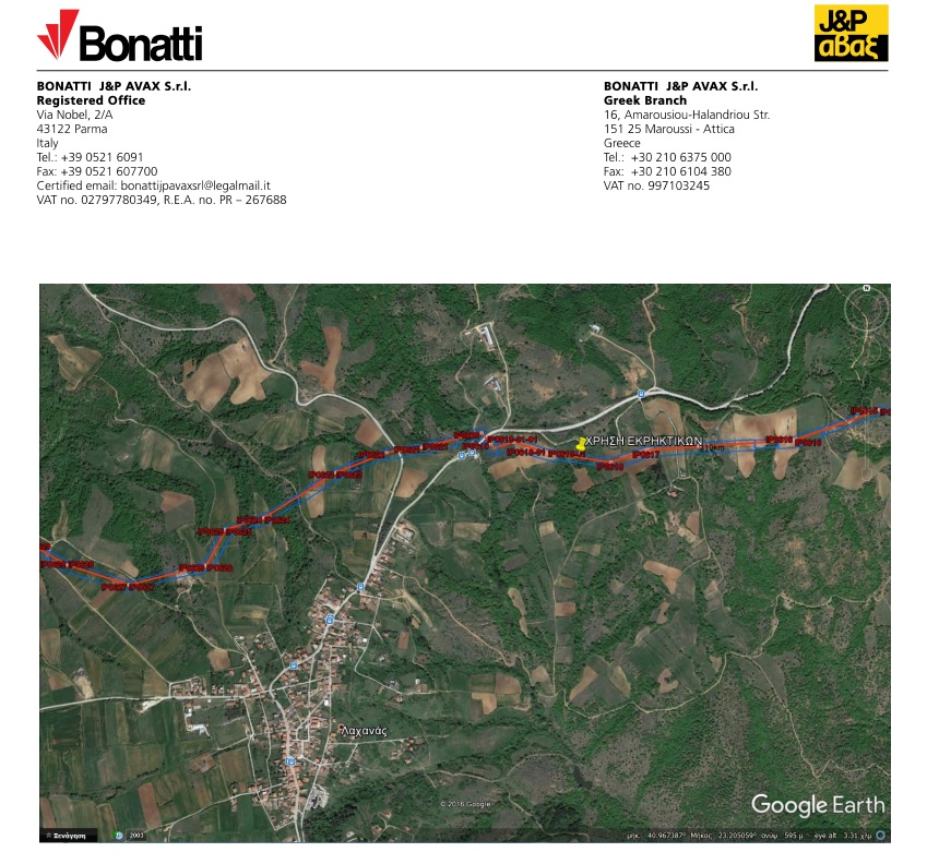 Σύμφωνα με ενημέρωση που είχαμε από την εταιρεία κατασκευής του Διαδραστικού Αγωγού Φυσικού Αερίου (TAP), απαιτείται να γίνει χρήση εκρηκτικών για τη διάνοιξη της ζώνης εργασίας στην περιοχή του Λαχανά, στις θέσεις που προσδιορίζονται στην παρακάτω εικόνα.