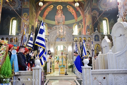 Ακολούθησε η Επίσημος Δοξολογία επί τη Εθνική Επετείω του 1821, ενώ στην σύντομη προσλαλιά του ο Σεβασμιώτατος αφού συνεχάρη τον ομιλητή για την τεκμηριωμένη ομιλία του, σημείωσε ότι «ο λαός μας και τότε και σήμερα περνά δυσκολίες. Η ελευθερία η οποία είναι το υπέρτατο αγαθό δοκιμάζετε συνεχώς, αλλά εμείς οφείλουμε να έχουμε Πίστη στο Θεό ότι μπορούμε να τα καταφέρουμε και να ανταπεξέλθουμε σε όλες τις δυσκολίες έχοντας ως μόνο αληθινό σύμμαχο την βαθιά μας Πίστη στο Θεό και αντλώντας δύναμη από το ηρωικό και τίμιο αίμα των προγόνων μας, μπορούμε να τα καταφέρουμε, να ανταπεξέλθουμε και να μεγαλουργήσουμε, διατηρώντας την πνευματική μας ανεξαρτησία, αρκεί να έχουμε σταθερότητα και ενότητα μεταξύ μας.