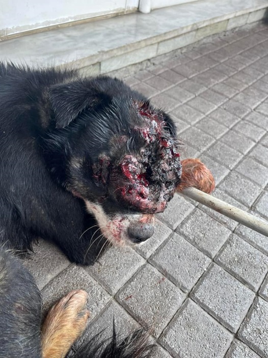 Με πρωτοβουλία της Βούλας Τζάνου ο σκυλάκος μεταφέρθηκε στην κτηνιατρική κλινική Αγαθαγγελίδη στην Σταυρούπολη, όπου υποβλήθηκε σε εξετάσεις. Η κατάστασή του είναι σοβαρή.