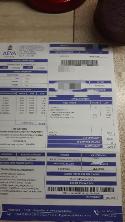 Εξέθεσαν κάθε πτυχή του ζητήματος της αύξησης των τιμολογίων ύδρευσης - αποχέτευσης. Του παραδώσαμε - ενδεικτικά μόνον - τιμολόγια νερού με ποσά 800, 1100, 1500, 1800 ευρώ. Του εξηγήσαμε ότι οι τιμές αυτές οφείλονται στην παράλογη και καταχρηστική αύξηση των τιμολογίων, στην μεθοδευμένη αλλαγή της τιμολογιακής κλίμακας και στην παράλειψη έγκαιρης καταγραφής των ενδείξεων των μετρητών νερού. Η παράλειψη αυτή έχει ως αποτέλεσμα την υπαγωγή των ενδείξεων - όταν τελικά γίνει - να προσμετρούνται οι καταναλώσεις σε μεγαλύτερη βαθμίδα της τιμολογιακής κλίμακας, με αποτέλεσμα τις υπέρογκες χρεώσεις.