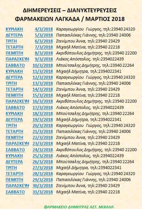 Με τα δεδομένα που υπάρχουν έως αυτή την ώρα, ανακοινώνεται απο τον Δήμο Λαγκαδά ότι όλες οι Σχολικές Μονάδες του Δήμου Λαγκαδά θα είναι ανοιχτές αύριο Τρίτη 27 Φεβρουαρίου 2018, εκτός των σχολικών μονάδων στις Δημοτικές Ενότητες Βερτίσκου και Σοχού, του Δημοτικού Παιδικού Σταθμού Σοχού και του ΚΔΑΠ Πέντε Βρυσών, για λόγους ασφάλειας των μαθητών.